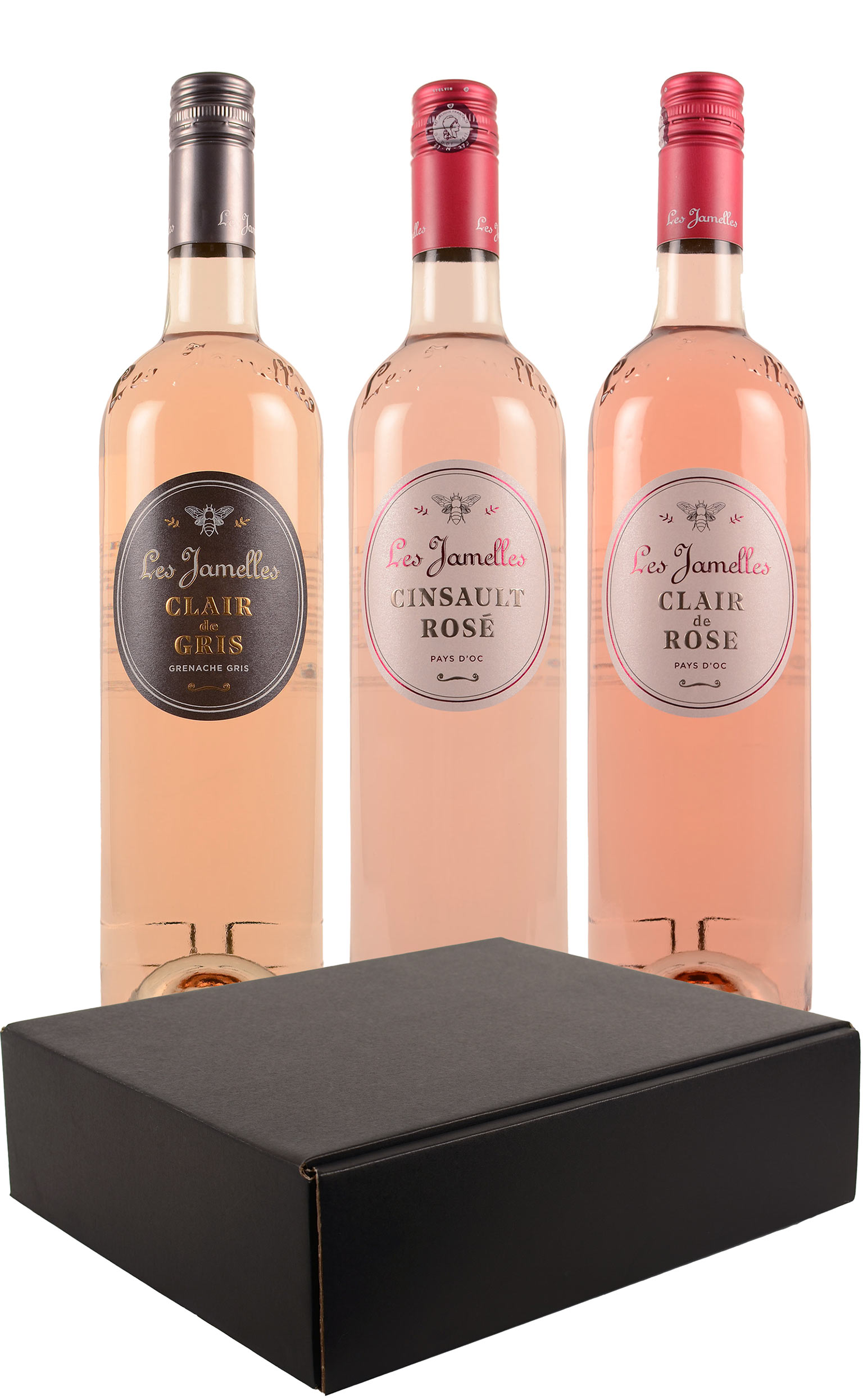 Deze wijnbox bevat 3 prachtige rosés uit de handen van de 'Artisans des Vins du Sud de la France' Catherine Delaunay en haar man. Ontdek deze 3 verschillende smaken: 1x 2019 Les Jamelles Classic - Vin de Pays d'Oc Clair de Gris - Grenache Gris, 1x 2019 Les Jamelles Classic - Vin de Pays d'Oc Cinsault en 1x 2019 Les Jamelles Classic - Vin de Pays d'Oc Clair de Rose Ideaal om na te genieten van de zomer.